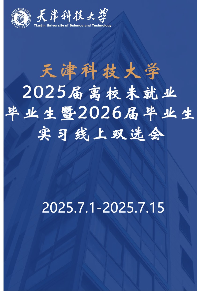 为深入贯彻党中央、国务院关于高校毕业生就业工作的决策部署,满足用人单位招才引智需求,为我校学生拓宽就业渠道,我校拟举办天津科技大学2025届离校未就业毕业生暨2026届毕业生实习线上双选会。