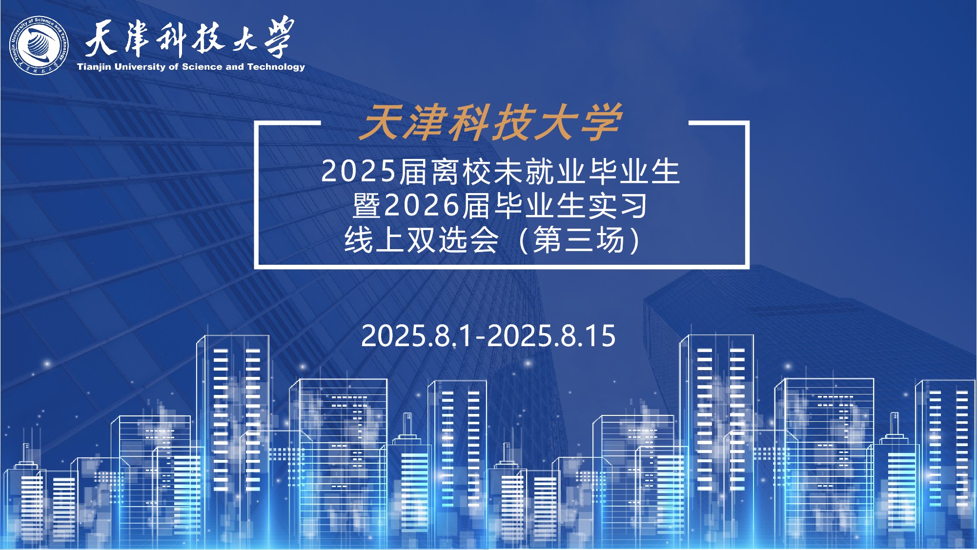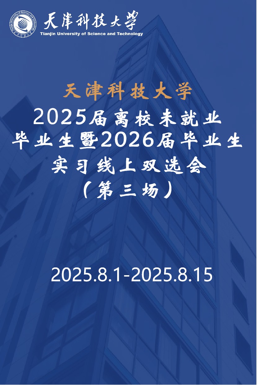 为深入贯彻党中央、国务院关于高校毕业生就业工作的决策部署,满足用人单位招才引智需求,为我校学生拓宽就业渠道,我校拟举办天津科技大学2025届离校未就业毕业生暨2026届毕业生实习线上双选会(第三场)。